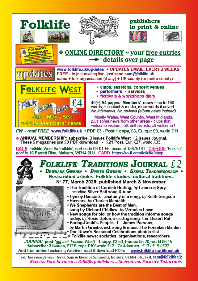 Folklife, publishers, print & online. Folklife West; Journal; Directory. Emailed Updates.