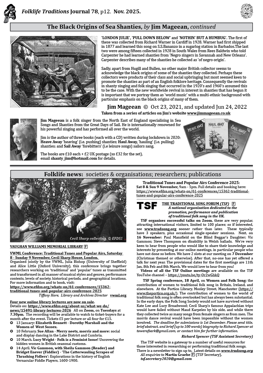 - The Black Origins of Sea Shanties, by Jim Mageean, pp10-12