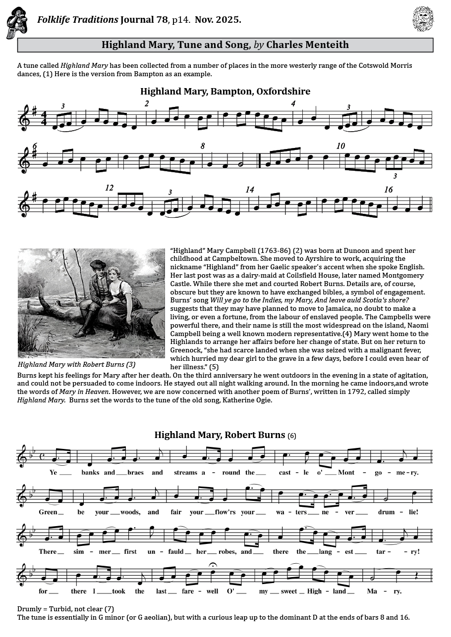 - Highland Mary, Tune and Song, by Charles Menteith, pp14-15, 17