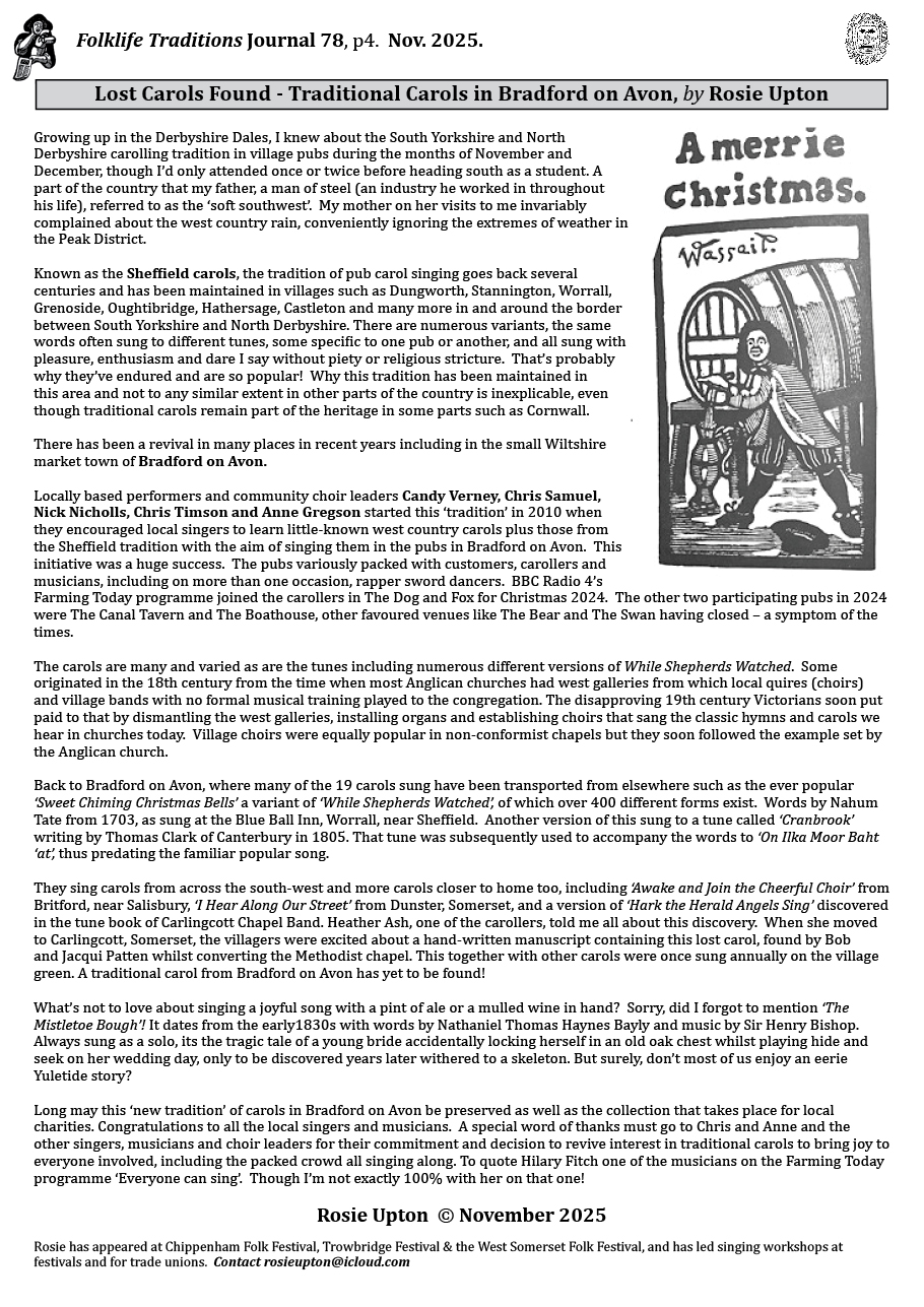 - Lost Carols Found - Traditional Carols in Bradford on Avon, by Rosie Upton, p4