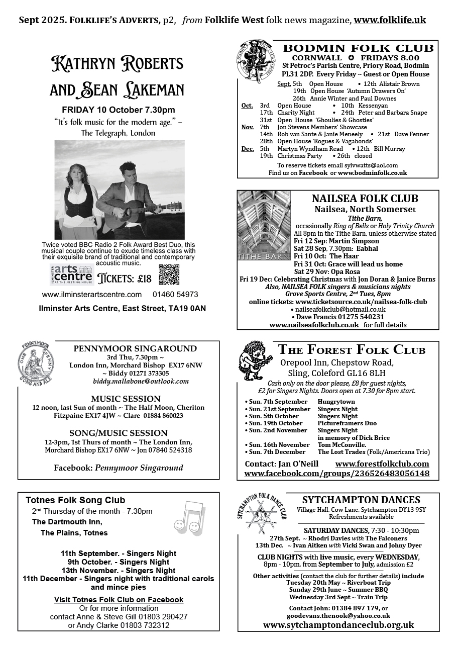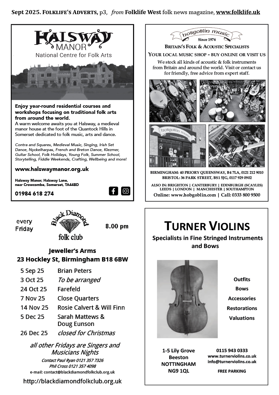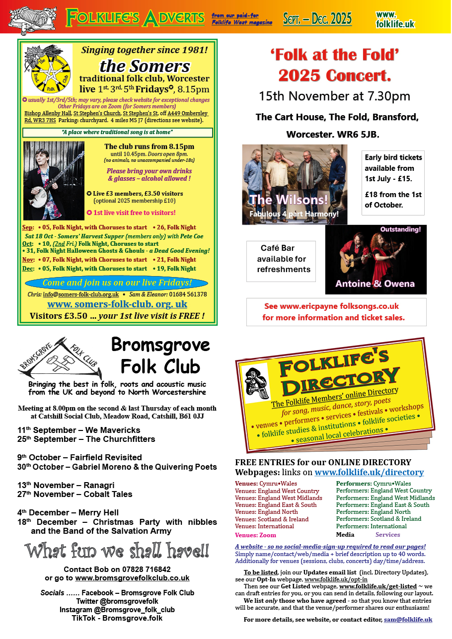 READ Folklife's Adverts below ~ sadly, on phones, our A4-size pages become too small to read