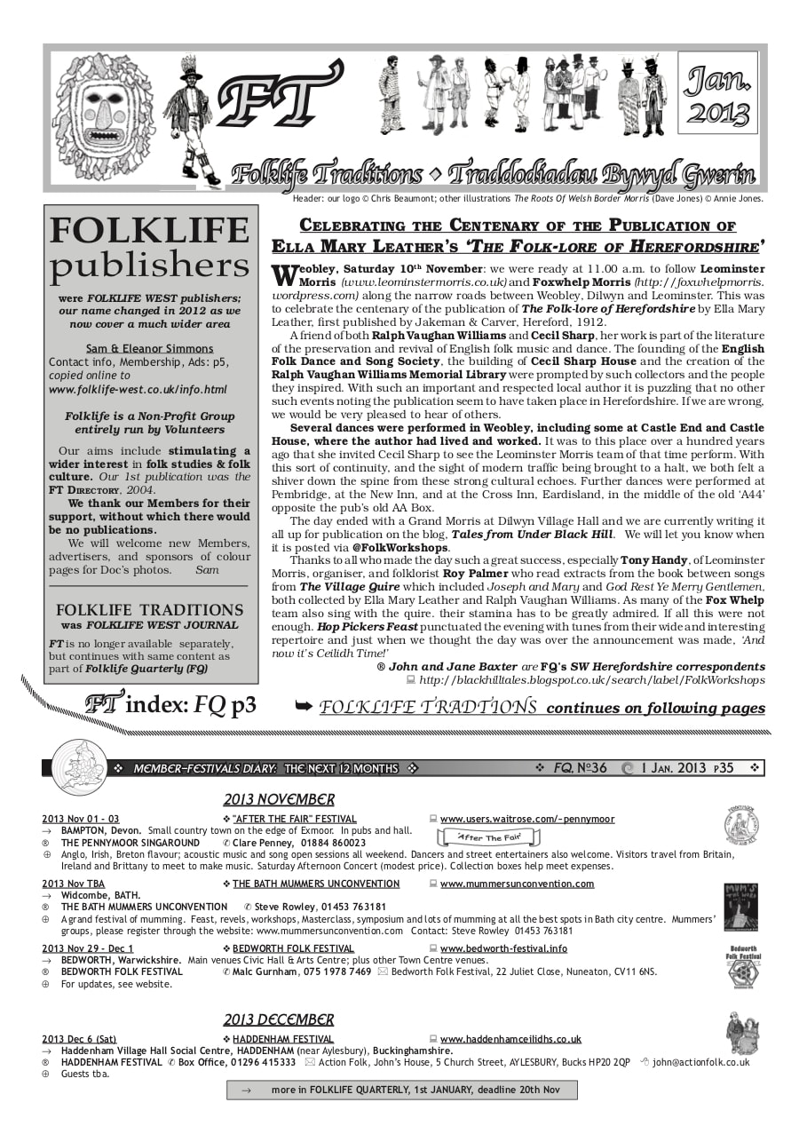● Centenary celebrations of 'The Folk-lore of Herefordshire’, from John and Jane Baxter, p35