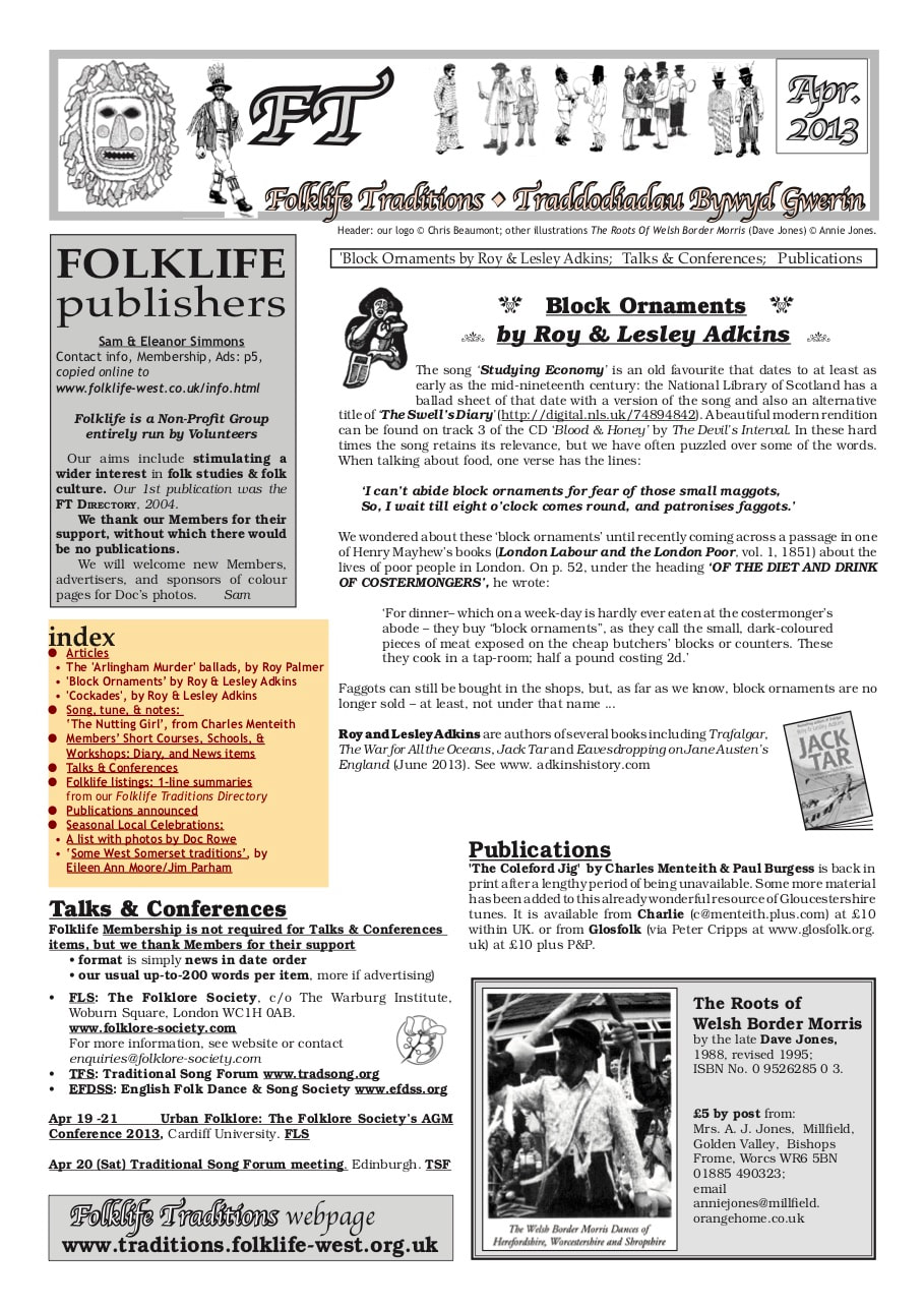 Issuu: e-magazine, see note above: https://issuu.com/traditions-uk/docs/ft-40
