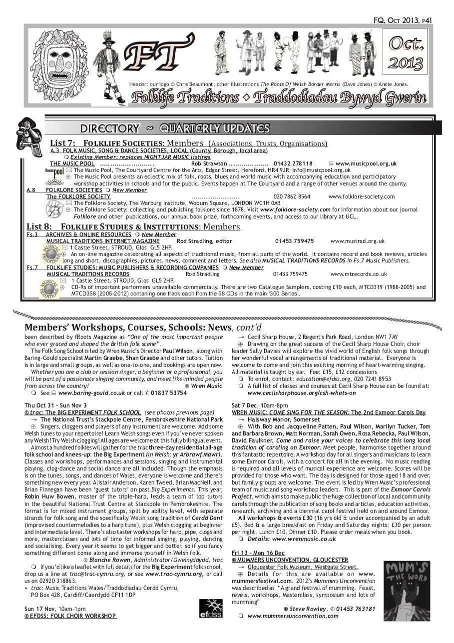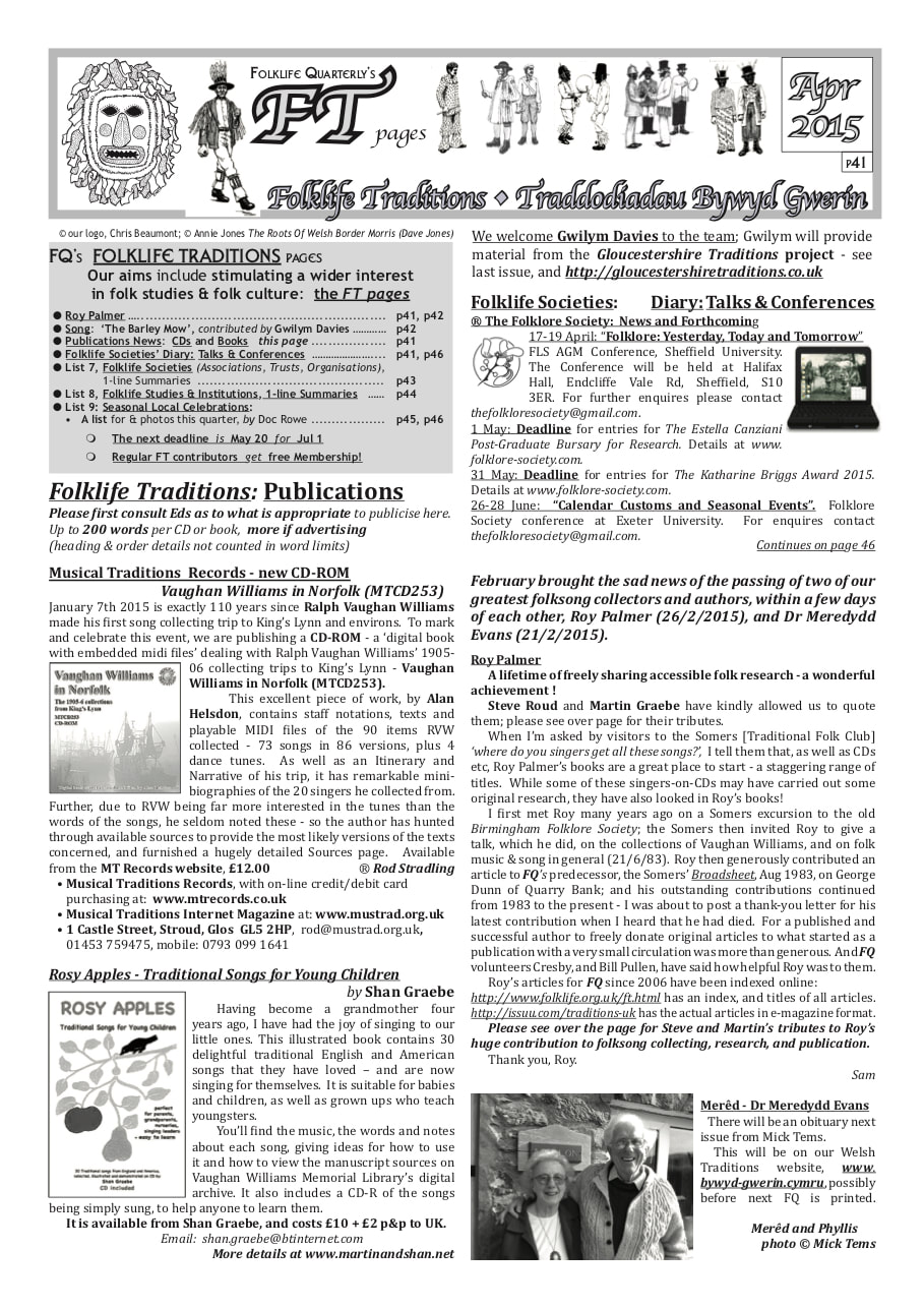 ● Tributes to Roy Palmer, Steve Roud, Martin Graebe, & editor, p41, p42
