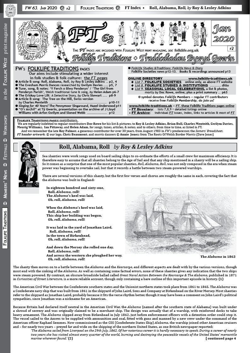 - Article & song: Roll, Alabama, Roll, from Roy & Lesley Adkins, p2, 4