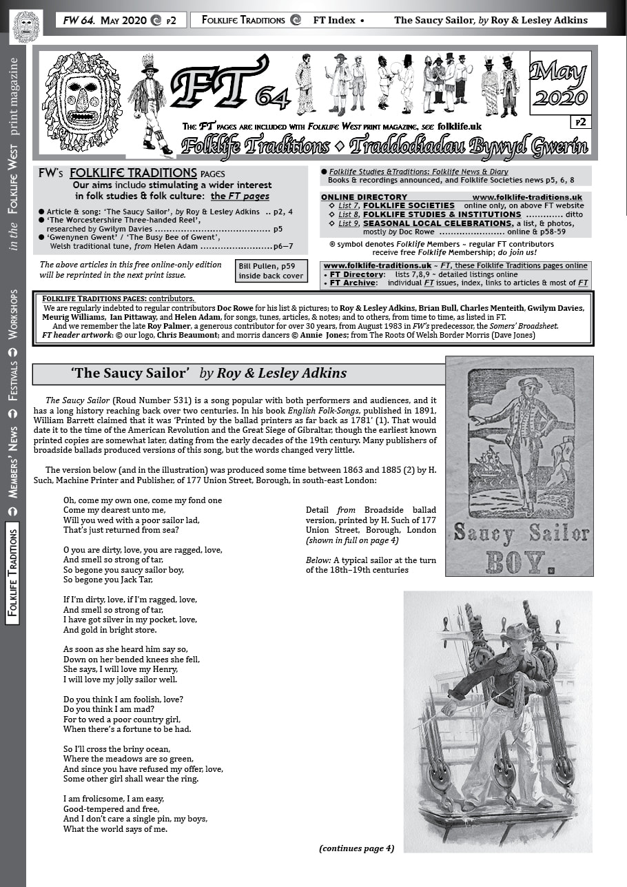 - Article & song: ‘The Saucy Sailor’, from Roy & Lesley Adkins, p2, 4