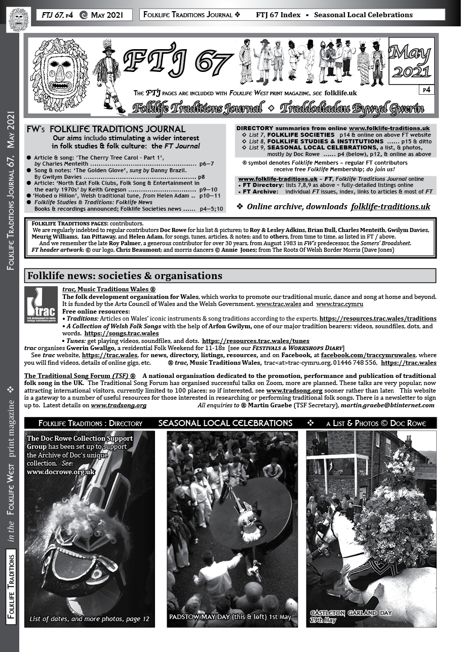 - Trac, p2; TSF, p2; Folklore Society, p2; Folk21, p13; EFDSS VWM Library, p17