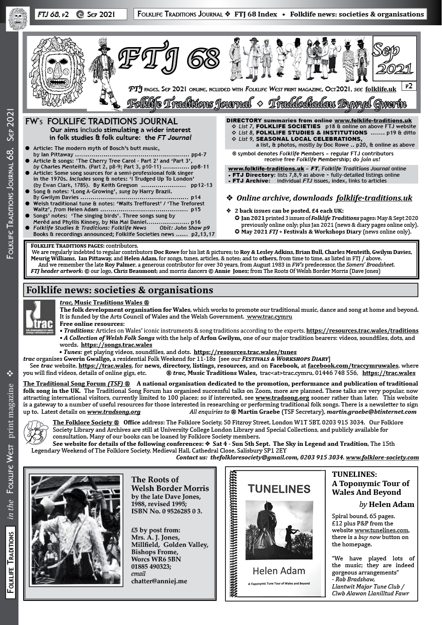 - Trac, p2; TSF, p2; Folklore Society, p2; Folk21, p7; Bodmin Wassailing, p7