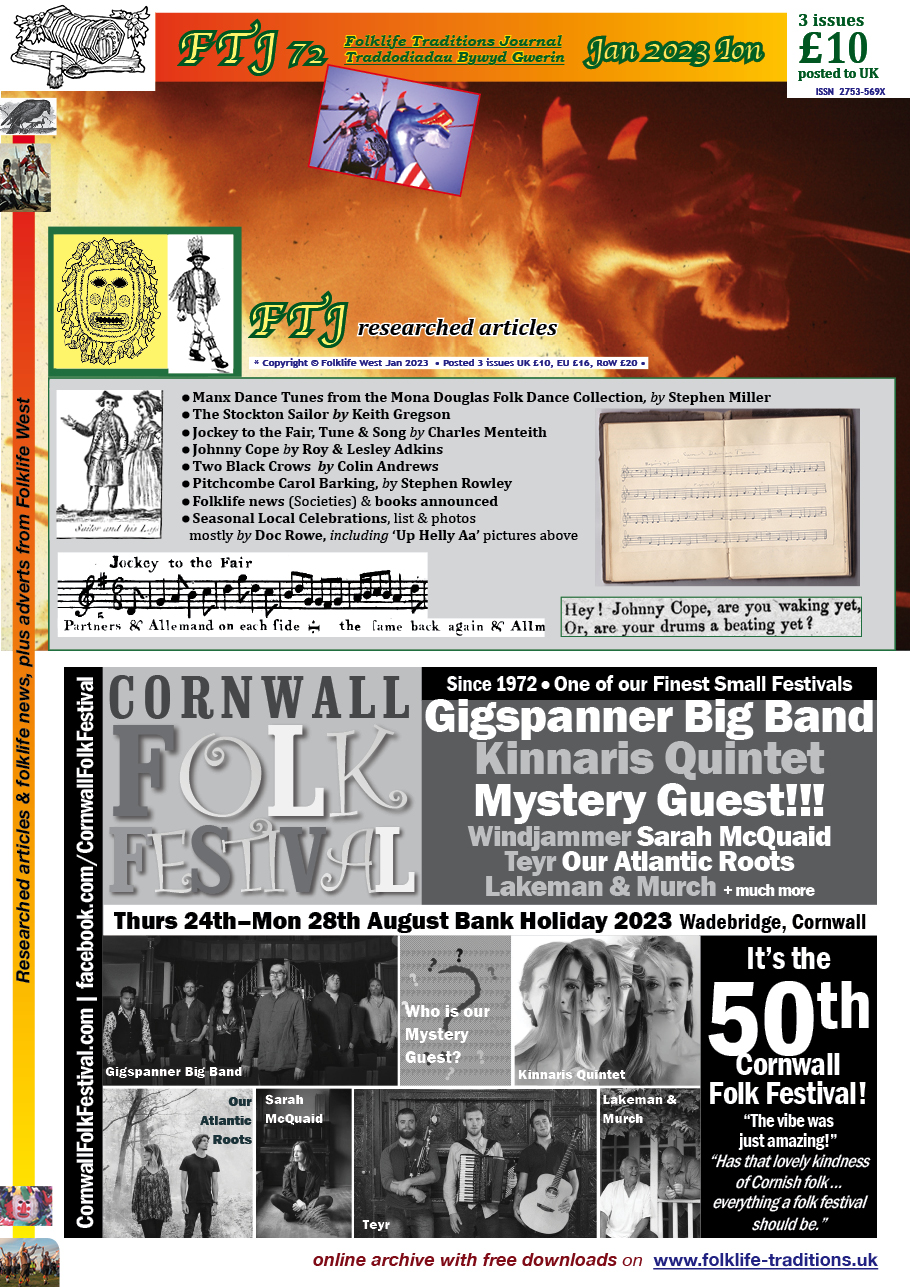 - Article: Manx Dance Tunes from the Mona Douglas Folk Dance Collection, by Stephen Miller, p4-6