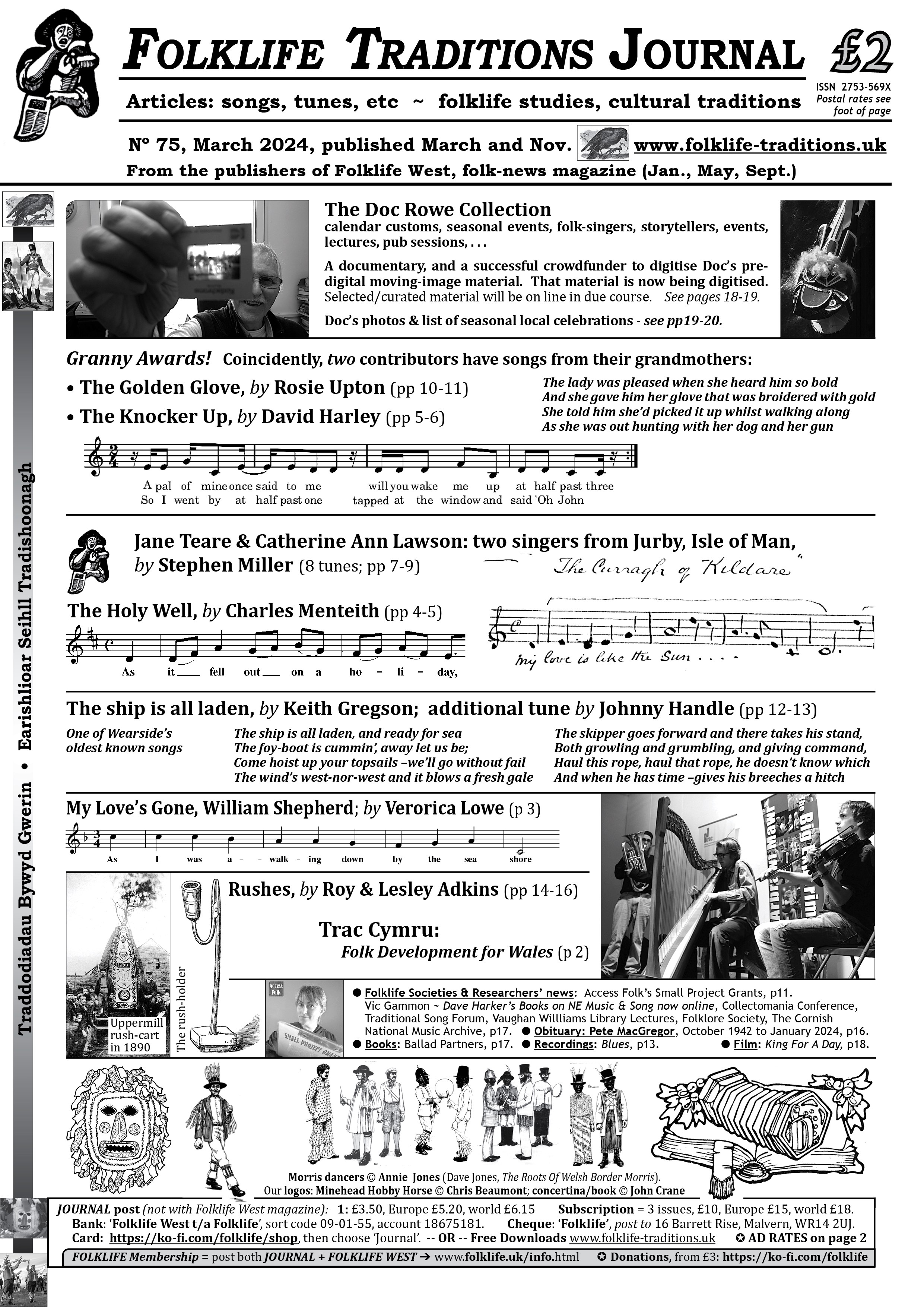 - -------- Note ------ PDF files (each 7.8mb) should be perfectly readable; a higher-quality ["Press Quality"] file is available, cost £3, email sam@folklife.uk •• This Journal: by post; contribute; advert rates; see page 15.
