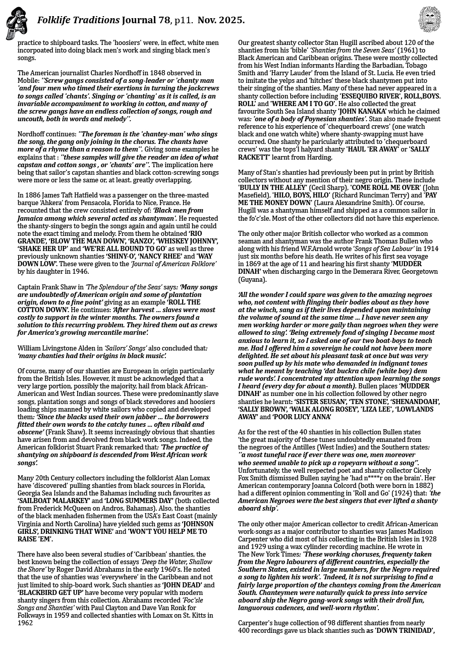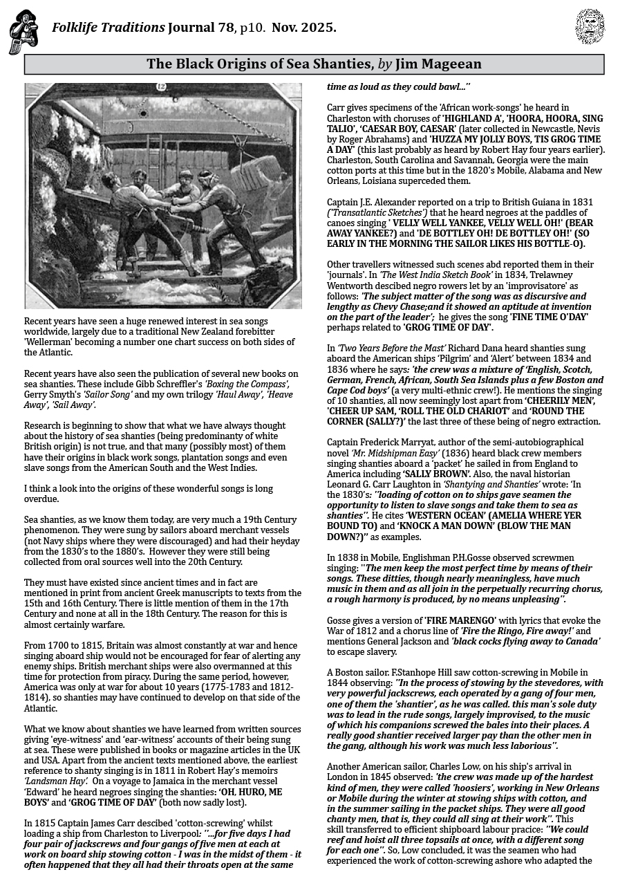 - The Black Origins of Sea Shanties, by Jim Mageean, pp10-12