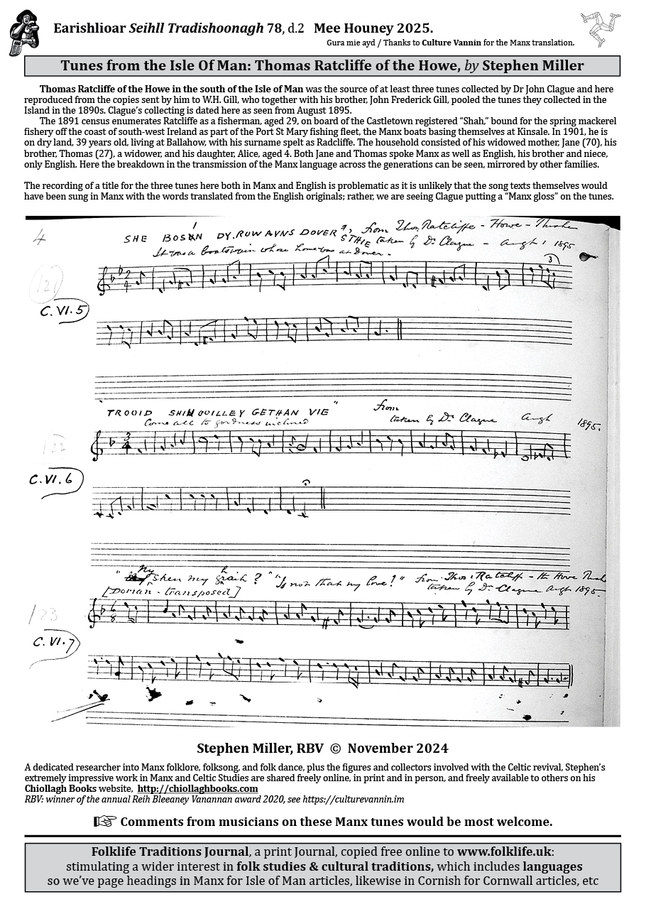 - Tunes from the Isle Of Man: Thomas Ratcliffe of the Howe, by Stephen Miller, p2