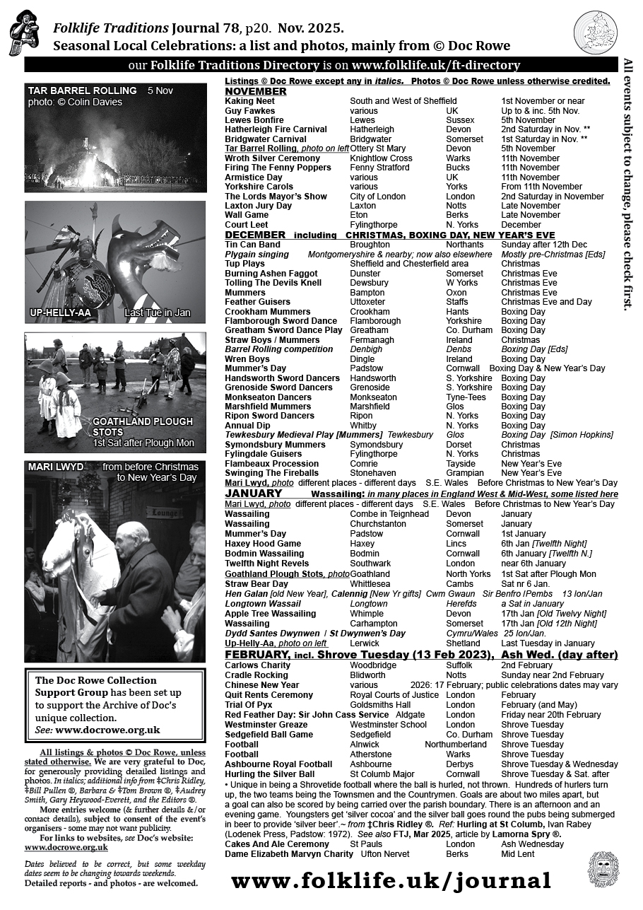 Seasonal Local Celebrations, November to February, list & photos, mostly by Doc Rowe, p20
