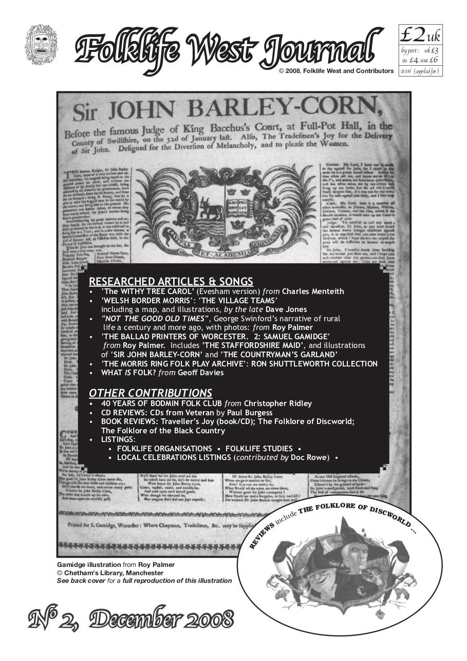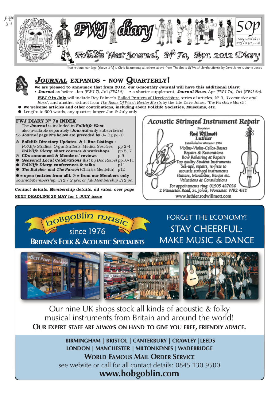 It was then published irregularly (due to lack of time and money) and over time, contents gradually became more focused on ‘folklife’, with ‘folk club’ elements (such as folk CDs) being transferred to our Folk West magazine.